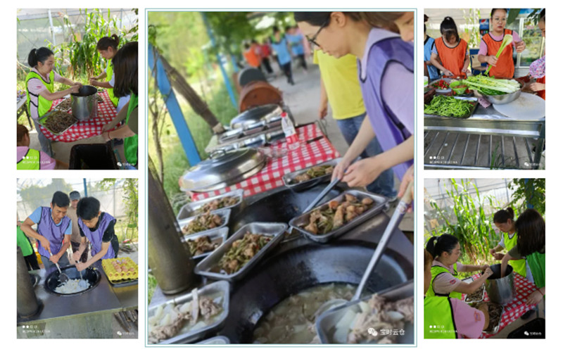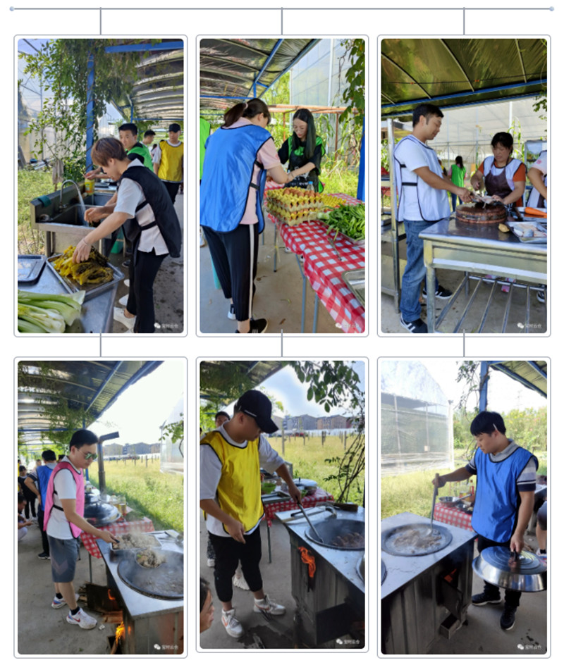 洗菜,切菜,燒火,炒菜,端菜一切井然有序;幾位男生更是大展廚藝,給大家做了一頓豐盛的午餐。