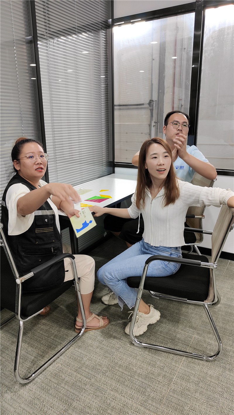 七巧板游戲結(jié)束,各小組內(nèi)部頭腦風(fēng)暴,總結(jié)此次活動經(jīng)驗。