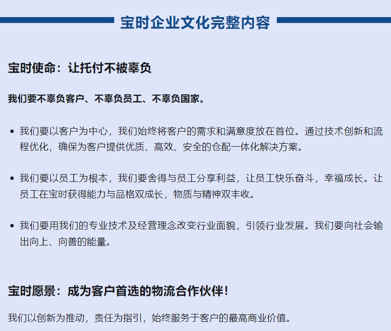 此次寶時(shí)云倉企業(yè)文化研討會(huì)的成功召開,不僅為企業(yè)文化的深入發(fā)展奠定了堅(jiān)實(shí)基礎(chǔ),更為企業(yè)的未來發(fā)展注入了新的活力。相信在全體員工的共同努力下,寶時(shí)云倉將在未來的道路上越走越遠(yuǎn),實(shí)現(xiàn)更加輝煌的成就。