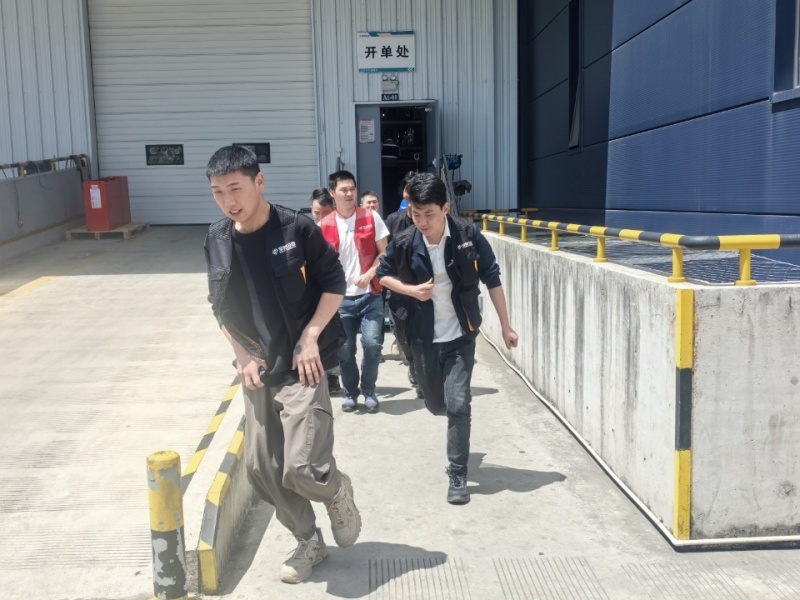 “倉庫失火,全體人員立即疏散!” 隨著刺耳的警報聲驟然響起,演練正式啟動。新浜一倉與新浜二倉模擬倉庫因電氣線路老化引發火災的緊急場景。霎時間,現場濃煙彌漫,警報聲持續不斷。各應急小組迅速反應,依據既定分工,有條不紊地組織人員撤離至安全地帶,同時迅速啟動初期火災撲救流程。