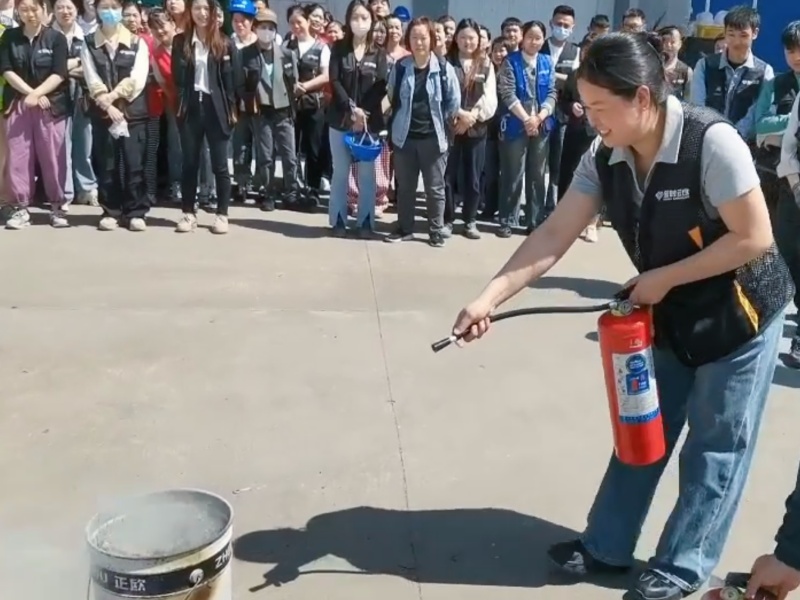 員工們依次上手操作,手持滅火器對準模擬火源。隨著 “嗤” 的一聲,白色干粉噴涌而出,迅速壓制住火焰。部分員工起初略顯慌亂,但在倉經理的耐心指導下,及時調整操作姿勢,順利完成滅火任務。“以往只是旁觀他人操作,今天親自動手才明白,每個操作步驟都至關重要,容不得半點馬虎!” 一位參與演練的員工有感而發。