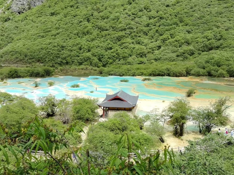 清晨,動(dòng)車(chē)穿越川西高原,窗外的風(fēng)景從平原漸變?yōu)槲《肴荷?。抵達(dá)黃龍后,乘索道上山,漫步在五彩池群間。陽(yáng)光灑落,池水如翡翠般晶瑩剔透,層層疊疊的鈣華池宛如仙境梯田?!斑@水也太清澈了!”“像不像神仙打翻的調(diào)色盤(pán)?”大家紛紛舉起手機(jī),記錄下大自然的鬼斧神工。